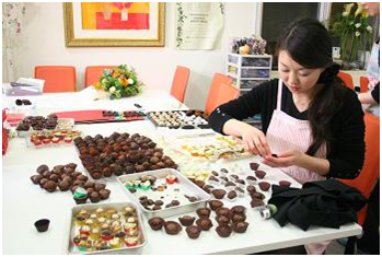 今年は、スィートチョコのガナッシュをホワイトチョコでコーティングを新たに加えて本当に素晴しかったです。生徒さんも、皆さん大満足で自分へのご褒美チョコで食べて、「美味しかった」でも「一人では出来ない。」とまた来年の予約も入りました。チョコレートづくりは、途中はどうなるかと心配になりますが箱に入れたときの満足感はいつもながら幸せです。味も中の生チョコにリキュールの香りがよくあって、とっても高級でした。