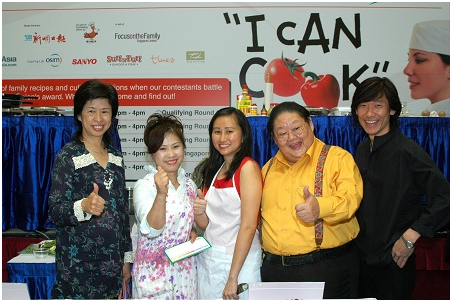 日本では、2品を1時間以内で作ること、また材料費も調味料を含めて¥2000円以内であることが条件でした。買い出しの時間も制限があって、結構厳しかったのですが、シンガポールではあんまり制限もなかったのか、あちらのチャンピオンの人はほとんど家で作ってきていて飾りのお皿にマーライオンなんか飾っていました。