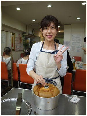 7月の後半は、これにペペロンチーノとオレンジのシフォンケーキです。こちらも素晴らしくふくれました。もちろん添加物は入れてませんよ。型から取るの大変なんですよ。Dさん、奮闘しましたね。パレットナイフを1回ずつ入れたり出したりしながら型からとっていきます。どうぞおたのしみに!
