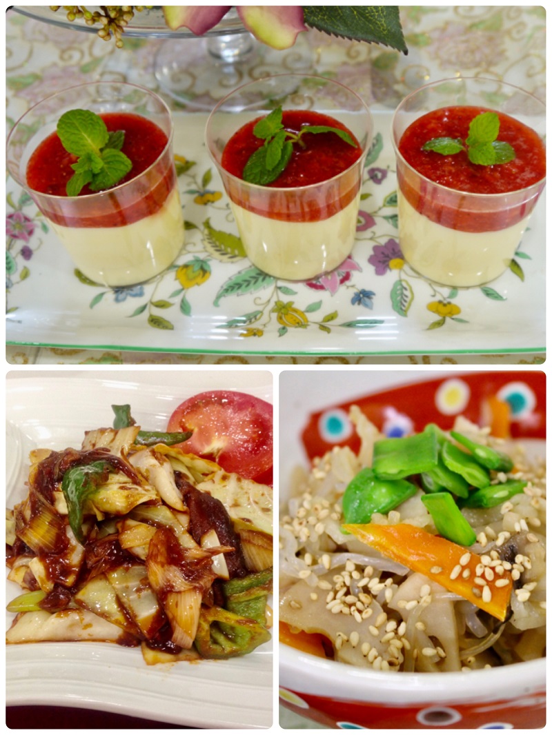 | 回鍋肉片(ホイコウロウ) 炒めなます いちごのババロア |