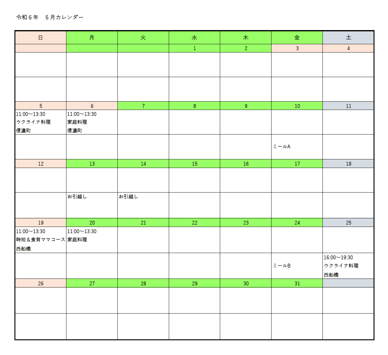 2024年5月のレッスン予定