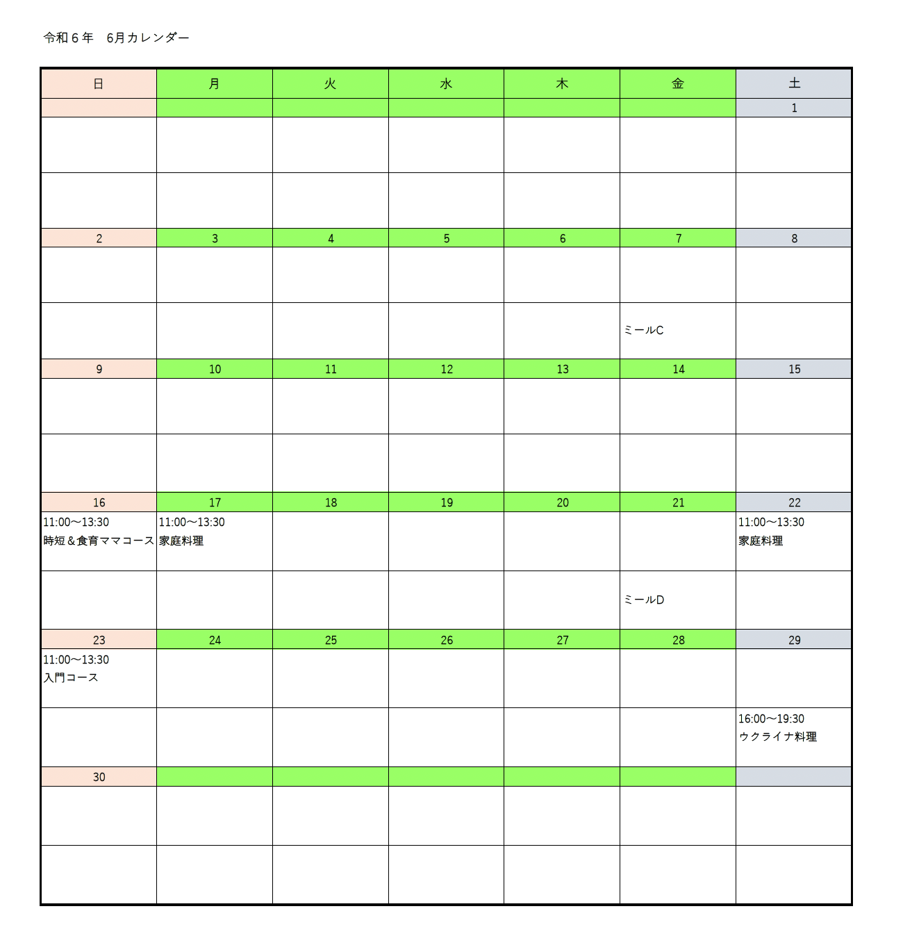 レッスンカレンダー