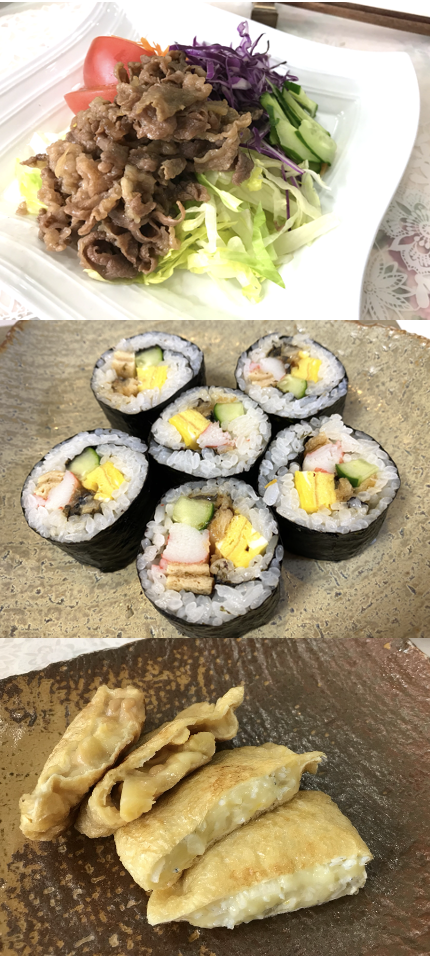 | ミートサラダ チーズインきんちゃく 簡単太巻き寿司 |