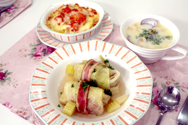 | ロールキャベツ ポテトのシシリー風 クラムチャウダー |