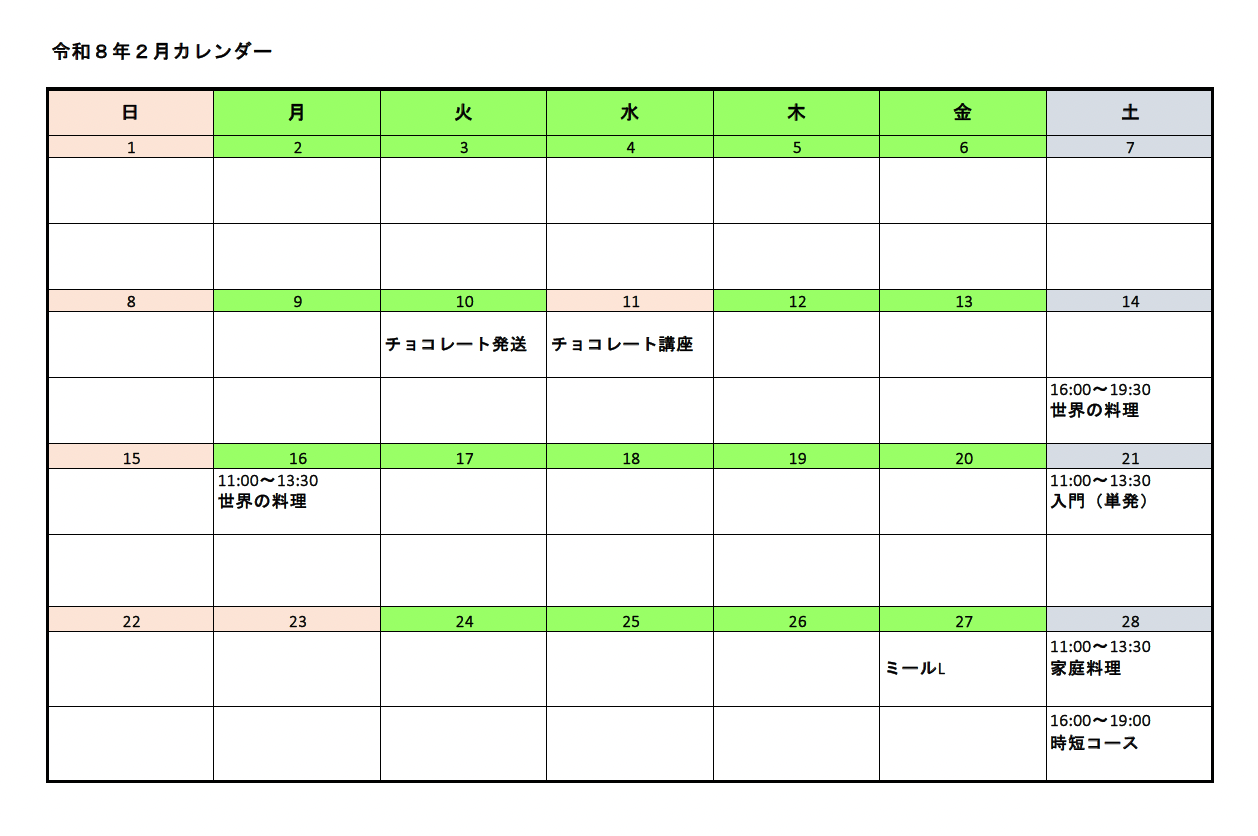 ※世界の料理コースは作業工程が多いため、時間によりデモンストレーションのみとなる場合がありますので、ご了承ください。