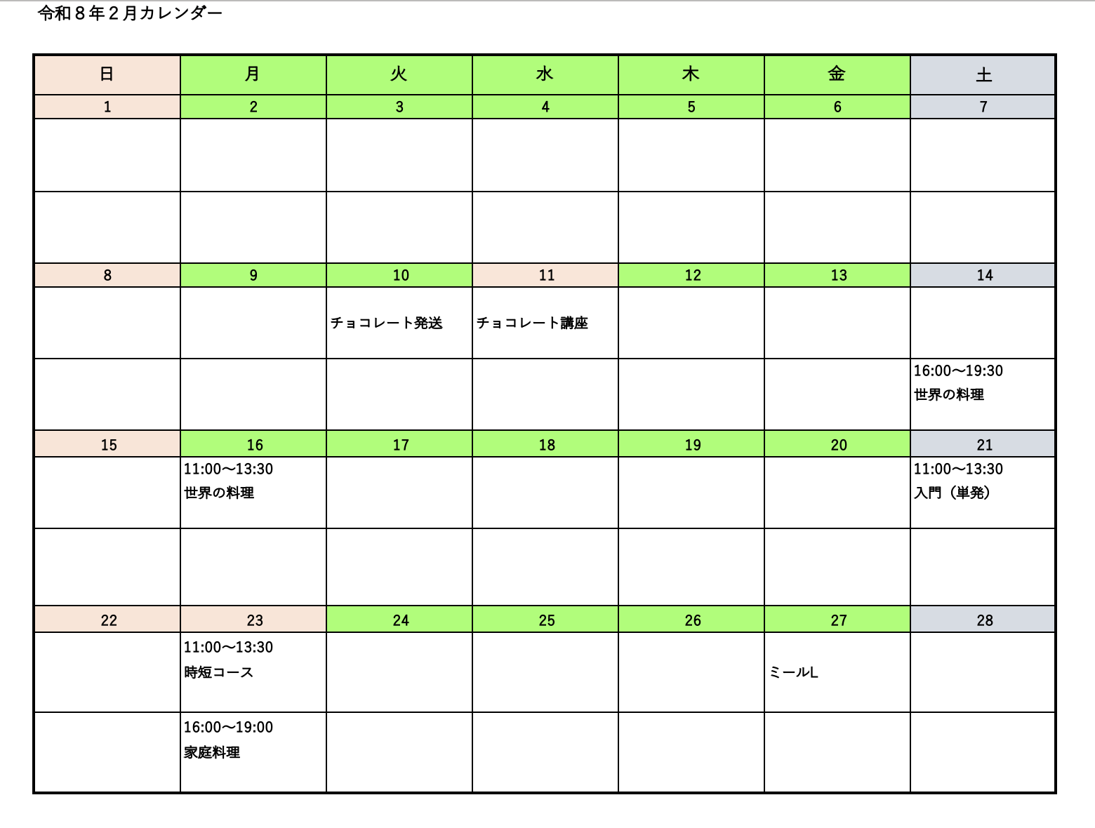 レッスンカレンダー